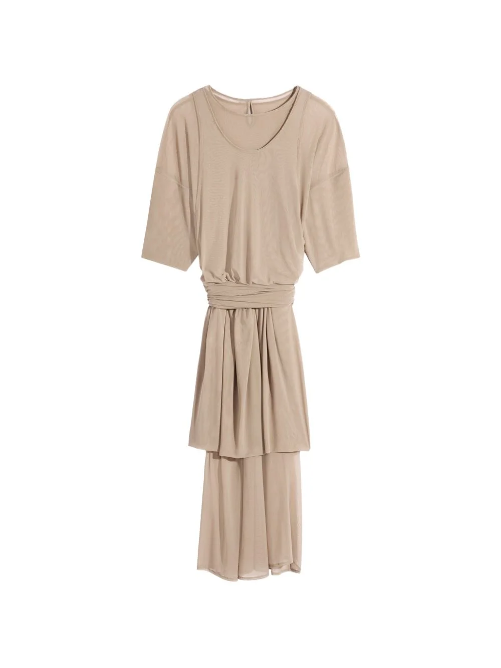 double layer midi dress Highlights - Light beige - Semi-sheer mesh - Draping at the waist - Short sleeves - Layered skirt Imported Composition Polyamide 93%, Spandex/Elastane 7% Washing instructions Dry Clean Only