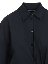 draped midi dress Highlights - Black - Front button fastening - Classic collar - Long sleeves - Mid-length Imported Composition Cotton 100% SIZE & FIT FittingInformation Designed for a loose fit at the chest with a close fit over the waist and hips Made from a midweight non-stretch fabric Washing instructions Machine Wash
