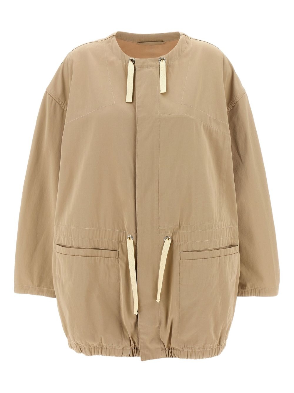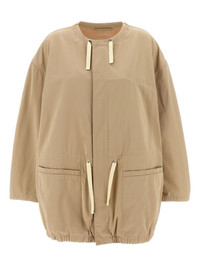 drawstring utility jacket Highlights - Beige - Elasticated hem - Zippered pockets - Front drawstring closures - Relaxed fit design Imported Composition Cotton 100%