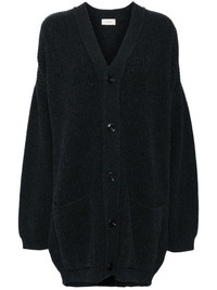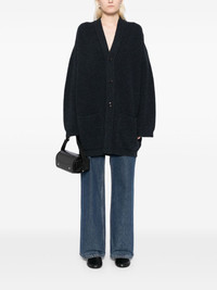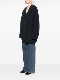 felted cardi-coat Highlights - Midnight blue - Wool - Knitted construction - Front button fastening - V-neck - Two front patch pockets - Ribbed cuffs and hem Made in Italy Composition Wool 100% SIZE & FIT Model measurements Height 5 ft 9 in(1.76 m) Bust/Chest 31.1 in(79 cm) Hips 35.03 in(89 cm) Waist 24.4 in(62 cm) FittingInformation Designed for an oversized fit, offering additional room throughout Constructed with additional length on the sleeve Made with a midweight knit, this piece offers some stretch Washing instructions Hand Wash
