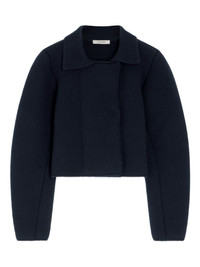 felted double-breasted blouson jacket Highlights - Midnight black - Felted wool - Double-breasted closure - Shirt collar - Long sleeves - Rib-knit trim Made in Italy Composition Fabric 100% Washing instructions Read Manufacturer Guidelines