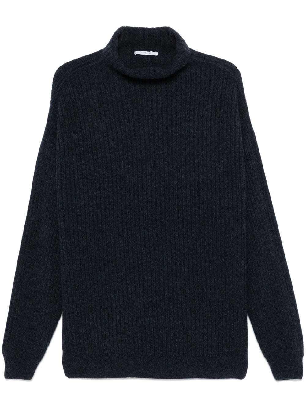 felted high neck sweater Highlights - Midnight blue - Wool - Ribbed knit - Felted finish - High neck - Melange effect - Drop shoulder - Long sleeves - Ribbed hem Made in Italy Composition Wool 100% SIZE & FIT Model measurements Height 6 ft 1 in(1.86 m) Bust/Chest 36.61 in(93 cm) Hips 37 in(94 cm) Waist 28.74 in(73 cm) FittingInformation Designed to be unstructured, offering a loose fit throughout Made with a midweight knit, this piece offers some stretch