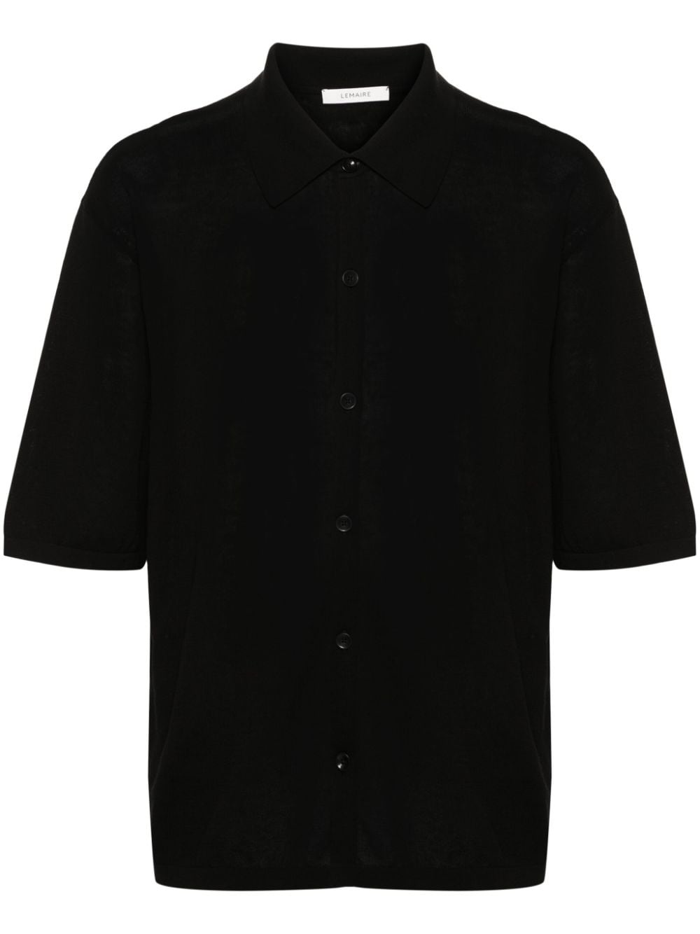 fine-knit cotton shirt Lemaire is known for its versatile, understated pieces, and this shirt is a prime example. It's crafted from black cotton with a straight-point collar and short sleeves. Highlights - Black - Cotton - Fine knit - Classic collar - Drop shoulder - Short sleeves - Short side slits - Ribbed cuffs and hem - Front button fastening Made in Italy Composition Cotton 100% SIZE & FIT Model measurements Height 6 ft 2 in(1.87 m) Bust/Chest 36.41 in(92.5 cm) Hips 37 in(94 cm) Waist 29.52 in(75 cm) Measurement CHEST 40.94 in(104 cm) SLEEVE LENGTH 22.04 in(56 cm) LENGTH 27.55 in(70 cm) FittingInformation Designed for a relaxed fit, this piece allows for comfort and movement when worn Made with a midweight knit, this piece offers some stretch This piece fits true to size – take your usual size