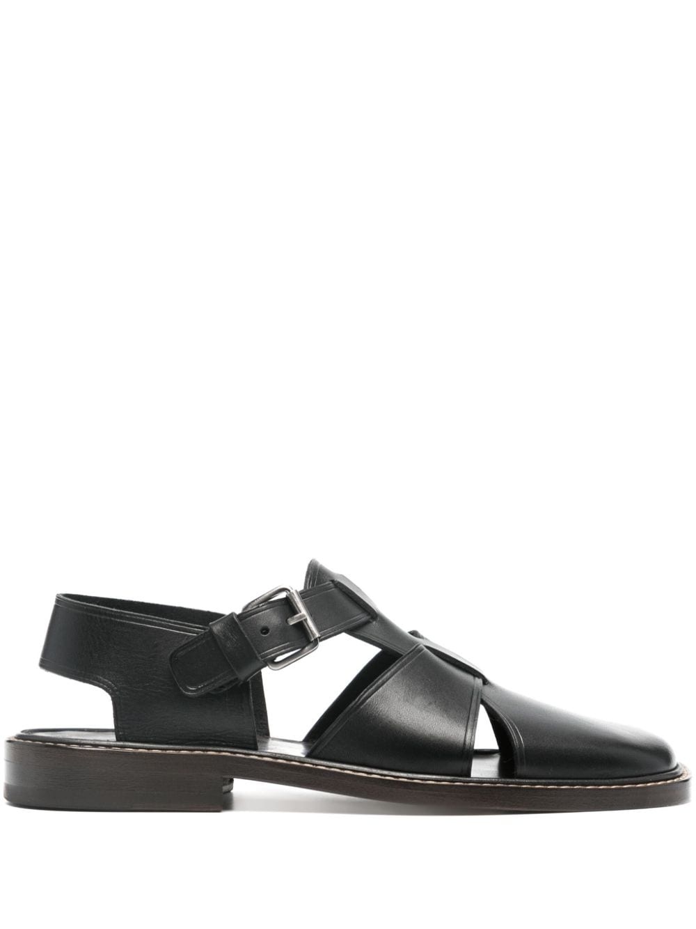 Fisherman leather sandals Highlights - Black - Calf leather - Grained texture - Square toe - Caged design - Slingback strap - Branded footbed - Low stacked heel - Leather outsole - Buckle-strap fastening - This piece comes complete with a protective dust bag. Imported Composition Outer: Calf Leather 100% Sole: Calf Leather 100% Lining: Calf Leather 100% SIZE & FIT Measurement HEEL 0.78 in(2 cm) Sole height 0.39 in(1 cm)