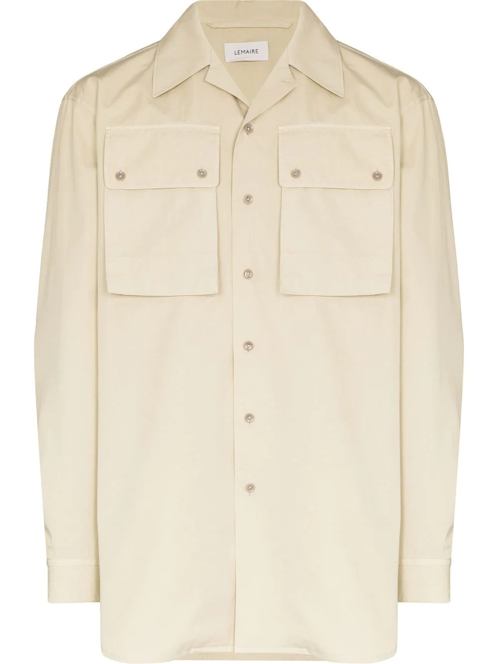 flap-pocket cotton shirt Lemaire puts a modern understated spin on a military-inspired silhouette with this cotton shirt. The muted grey piece has a camp collar and two large flap pockets on the chest. Imported Composition Cotton 100% SIZE & FIT Model measurements Height 6 ft 2 in(1.87 m) Bust/Chest 36.41 in(92.5 cm) Hips 37 in(94 cm) Waist 29.52 in(75 cm) Measurement CHEST 44.09 in(112 cm) SLEEVE LENGTH 25.19 in(64 cm) LENGTH 33.07 in(84 cm) FittingInformation This piece fits true to size. We recommend you get your regular size Cut for a loose fit Made with a mid-weight non-stretch fabric Washing instructions Machine Wash