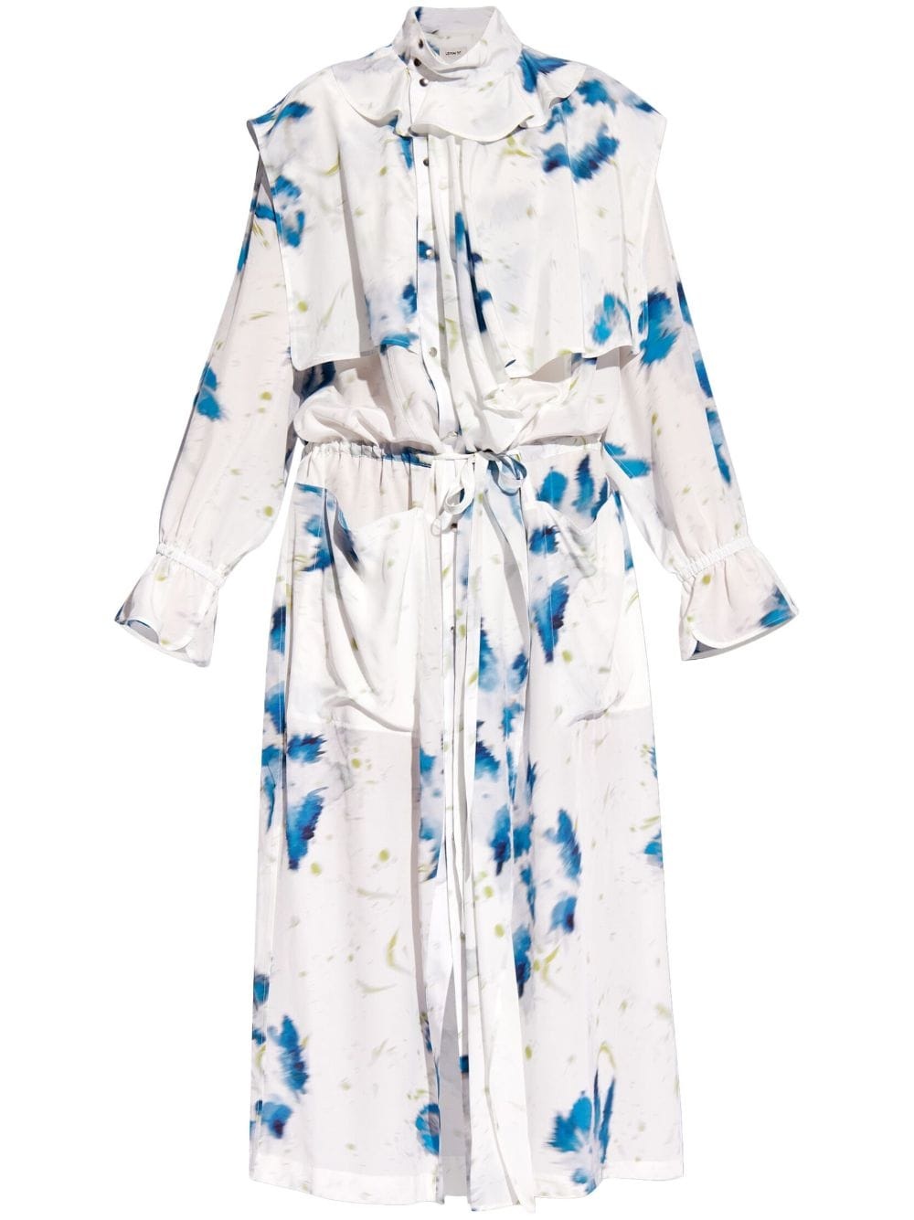 floral-print layered shirtdress Highlights - Blue/white - All-over floral print - Layered design - Mock neck - Front press-stud fastening - Drawstring waist - Two front patch pockets - Flounce sleeves - Straight hem - Mid-length Imported Composition Viscose 100%