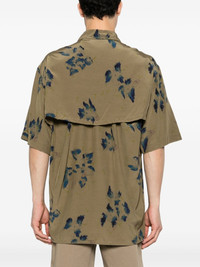 floral-print spread-collar shirt Highlights - Olive green - All-over floral print - Spread collar - Front button fastening - Storm flap - Drop shoulder - Short sleeves - Chest patch pocket - Curved hem - When buying this unisex item, keep in mind that it is graded in standard men's sizing. Imported Composition Viscose 100% SIZE & FIT Model measurements Height 5 ft 10 in(1.77 m) Bust/Chest 32.28 in(82 cm) Hips 35.03 in(89 cm) Waist 25.19 in(64 cm) Measurement CHEST 52.75 in(134 cm) SLEEVE LENGTH 11.41 in(29 cm) LENGTH 31.88 in(81 cm) WAIST 49.6 in(126 cm) FittingInformation This unisex piece is designed for a loose fit whether you usually select women's or men's sizes Made from a midweight non-stretch fabric