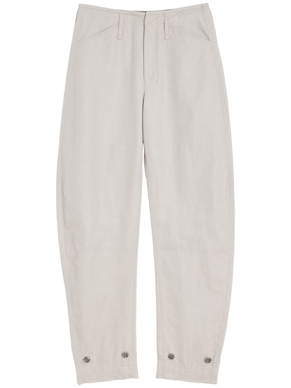 fluid tapered trousers Highlights - Beige - Concealed front button, hook and zip fastening - Two diagonal pockets to the sides - Two rear welt pockets - Belt loops Imported Composition Fabric 100% Washing instructions Read Manufacturer Guidelines