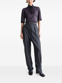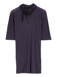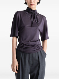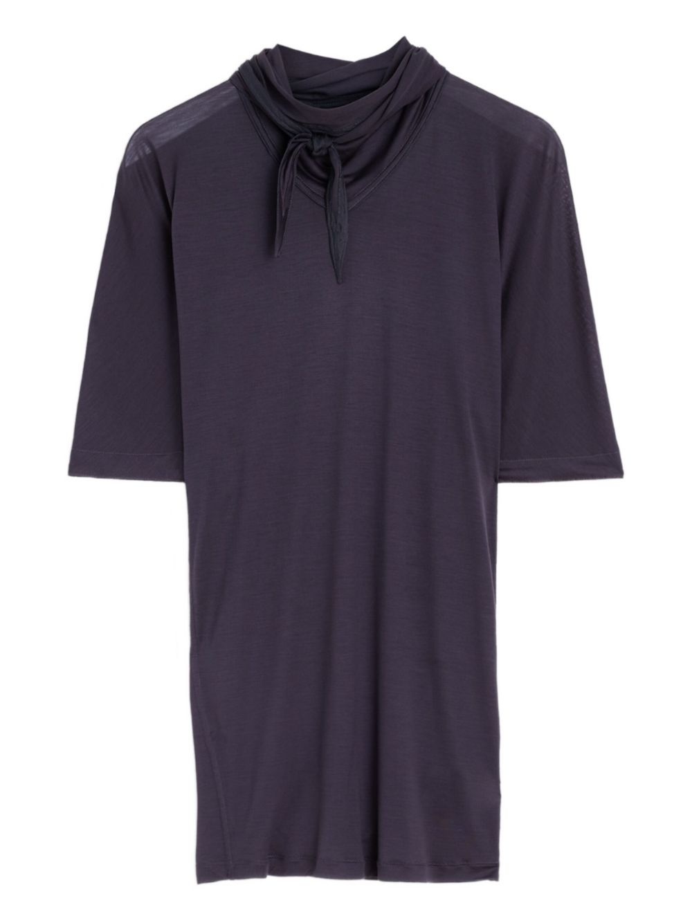 Foulard blouse Highlights - Dark purple - Semi-sheer panels - Gathered tie neck - Short sleeves Imported Composition Cotton 100%
