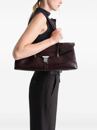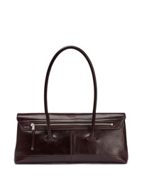 Gear shoulder bag Highlights - Brown - Folded flap design - Central metallic clasp - Twin top handles - Interior zip pocket Imported Composition Outer: Calf Leather 100% SIZE & FIT Measurement DEPTH 6.69 in(17 cm) HEIGHT 6.69 in(17 cm) WIDTH 13.38 in(34 cm)