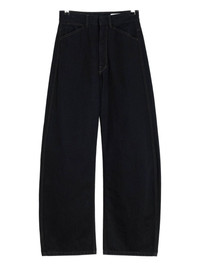 high-waisted curved jeans Highlights - Black - Hook and button fastening - Concealed zip fly - Side pockets - Back patch pockets - Contrast topstitching Imported Composition Outer: Calf Leather 100% Lining: Cotton 100% Washing instructions Machine Wash