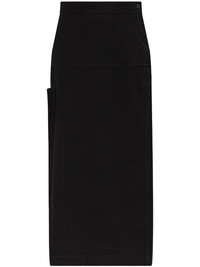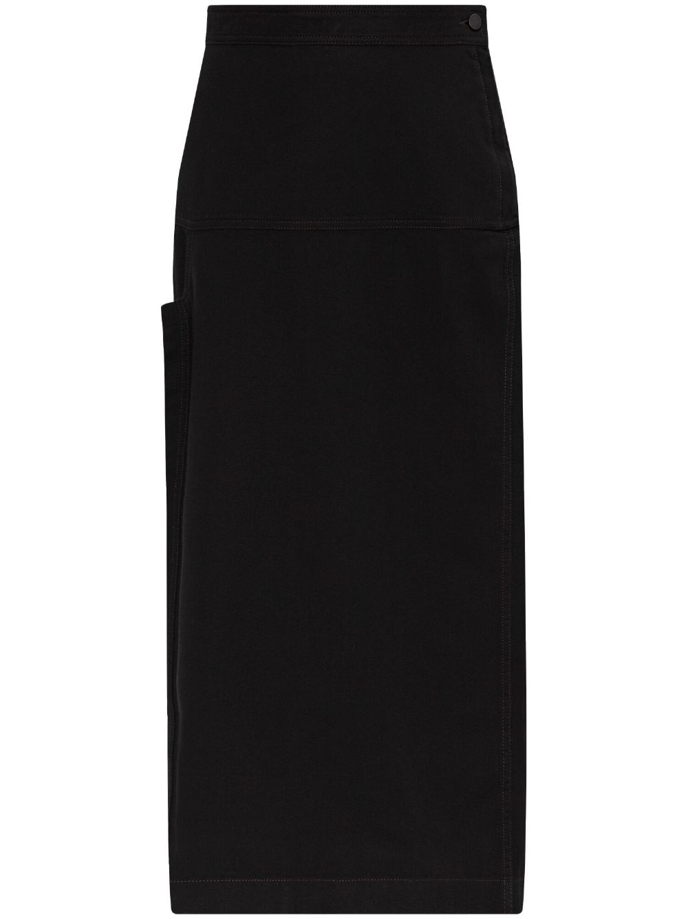 high-waisted skirt Highlights - Black - Side button fastening - Side buckle fastening - Two side inset pockets - Side slit Imported Composition Cotton 100%