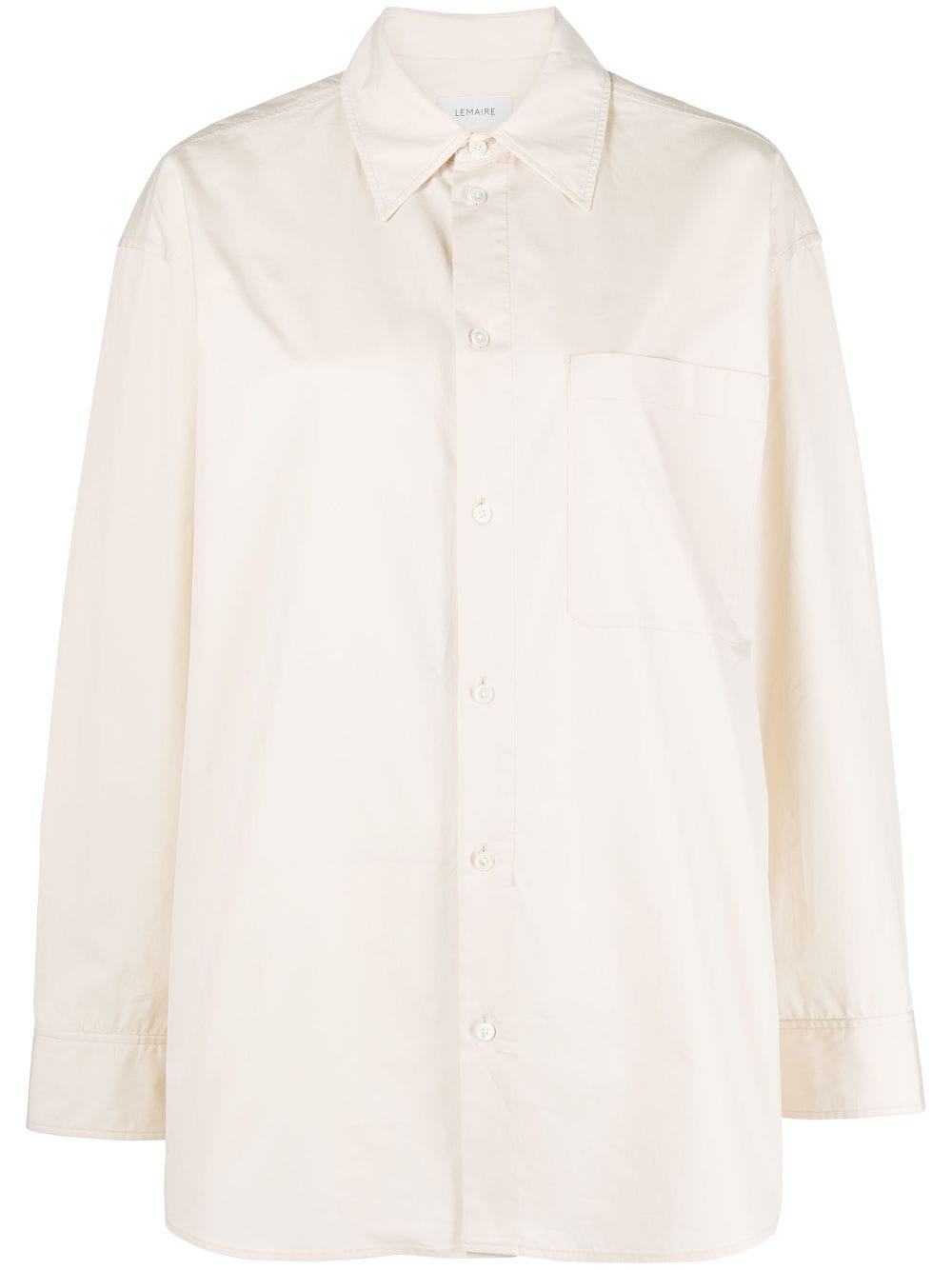 layered cotton shirt This Lemaire shirt may look classic at first glance, but the button placket unfastens to reveal a triangular panel underneath that can be draped across the chest when open. It’s cut from compact organic cotton poplin with a heavy handle to enhance the oversized fit. Highlights - Cream white - Cotton - Poplin texture - Overlapping panel - Classic collar - Front button fastening - Chest patch pocket - Drop shoulder - Long sleeves - Buttoned cuffs - Curved hem Imported Composition Cotton 100% SIZE & FIT Model measurements Height 5 ft 10 in(1.78 m) Bust/Chest 31.49 in(80 cm) Hips 35.03 in(89 cm) Waist 23.62 in(60 cm) Measurement LENGTH 31.1 in(79 cm) FittingInformation Designed for an oversized fit, offering additional room throughout Made from a midweight non-stretch fabric This piece fits true to size – take your usual size Washing instructions Machine Wash