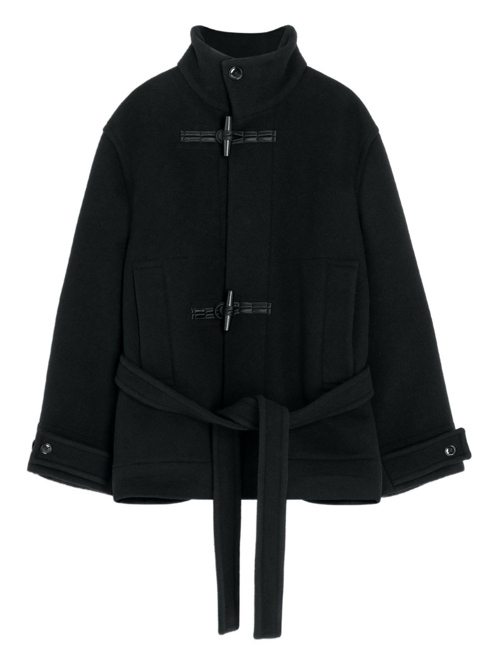 LEMAIRE Highlights - Black - Wool - Stand-up collar - Toggle closure - Long sleeves - Belt Imported Composition Wool 100%