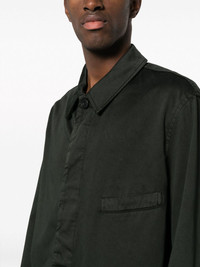 long-sleeve shirt jacket Lemaire showcases the art of simplicity with this shirt jacket. It's cut from pure cotton and finished with three pockets on the front. Highlights - Dark green - Cotton - Straight-point collar - Front button fastening - Long sleeves - Slit pocket at the chest - Two front flap pockets - Straight hem Imported Composition Lining: Cotton 100% Outer: Cotton 100% SIZE & FIT Model measurements Height 6 ft 0 in(1.84 m) Bust/Chest 36.22 in(92 cm) Hips 35.43 in(90 cm) Waist 26.77 in(68 cm) Washing instructions Dry Clean Only