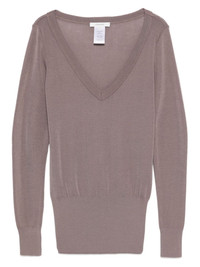 long-sleeve V-neck sweater Highlights Imported Composition Wool 100% SIZE & FIT Model measurements Height 5 ft 9 in(1.75 m) Bust/Chest 34.64 in(88 cm) Hips 36.61 in(93 cm) Waist 26.37 in(67 cm)