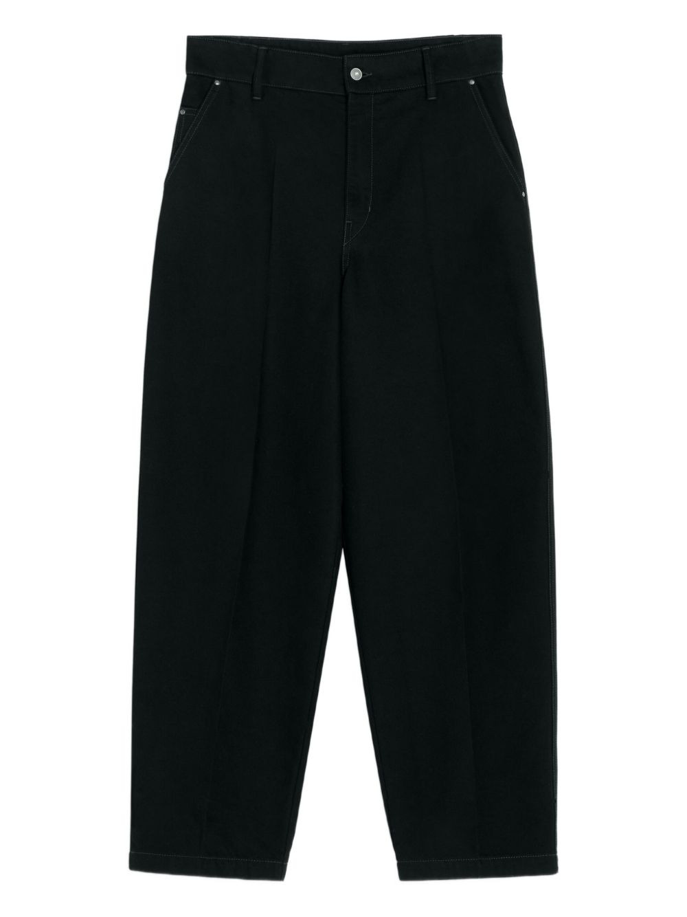 Maxi workwear trousers Highlights - Black - Heavy denim - Button closure - Silver-plated metal buttons - Copper-toned metal rivets - Contrast topstitching - Back patch pockets Imported Composition Cotton 100% Washing instructions Read Manufacturer Guidelines
