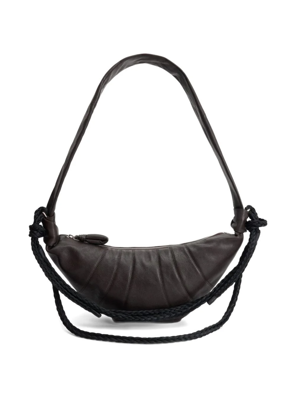 medium Croissant shoulder bag Highlights - Dark brown - Leather - Knotted braided shoulder strap - Zip fastening - Quilted pull tab - Although it is new and unworn, due to the specialised recovery and tanning process that lemaire uses for its leather goods, the texture of this piece will display signs of the material's natural grain, softness and creases. Imported Composition Outer: Calf Leather 100%