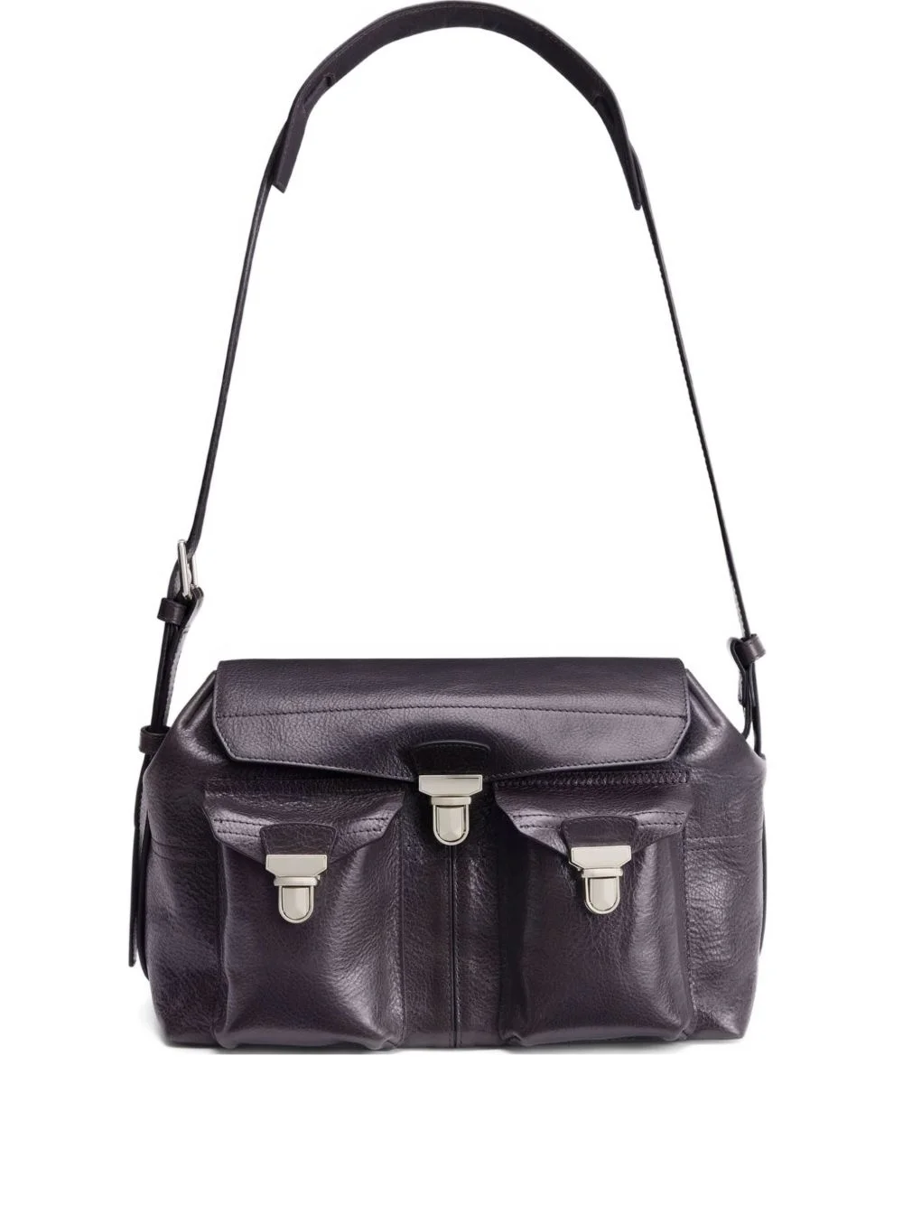 medium Gear leather shoulder bag Highlights - Black - Leather - Elongated design - Adjustable shoulder strap - Metal clip fasteners - Zipped pocket - This piece comes complete with a protective dust bag. Imported Composition Lining: Calf Suede 100% Outer: Calf Leather 100% SIZE & FIT Measurement DEPTH 6.29 in(16 cm) HEIGHT 13.38 in(34 cm) STRAP 11.81 in(30 cm) WIDTH 9.84 in(25 cm)