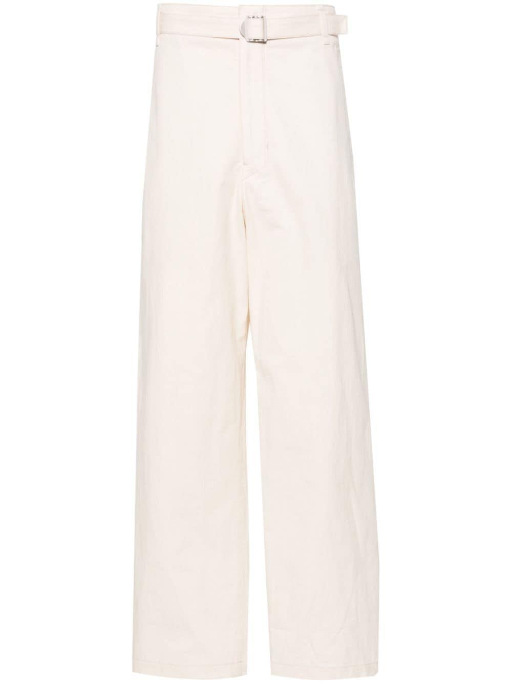 mid-rise straight-leg trousers Highlights - Ecru - Cotton - Interlock twill weave - Seamless - Mid-rise - Belt loops - Concealed front fastening - Belted waist - Two side slit pockets - Three rear patch pockets - Straight leg Imported Composition Lining: Cotton 100% Outer: Cotton 100% SIZE & FIT Model measurements Height 6 ft 2 in(1.87 m) Bust/Chest 37.79 in(96 cm) Hips 37.79 in(96 cm) Waist 30.31 in(77 cm) FittingInformation Designed for a straight-leg, allowing for an unrestricted and comfortable fit over the leg The belt offers adjustability for fitted preferences Made from a midweight non-stretch fabric This piece fits true to size – take your usual size