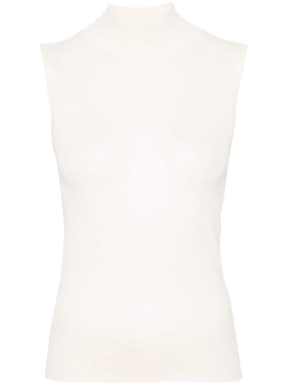 mock-neck sleeveless knitted top