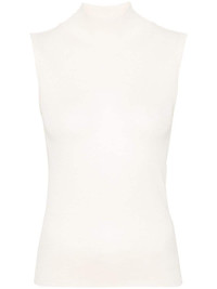 sleeveless knitted top Highlights - Cream white - Cotton-cashmere blend - Knitted construction - Mock neck - Sleeveless - Straight hem Made in France Composition Cotton 70%, Cashmere 30% SIZE & FIT Model measurements Height 5 ft 11 in(1.8 m) Bust/Chest 31.49 in(80 cm) Hips 35.82 in(91 cm) Waist 24.8 in(63 cm) FittingInformation Designed for a close fit throughout Made with a lightweight knit, this piece offers some stretch This piece fits true to size – take your usual size