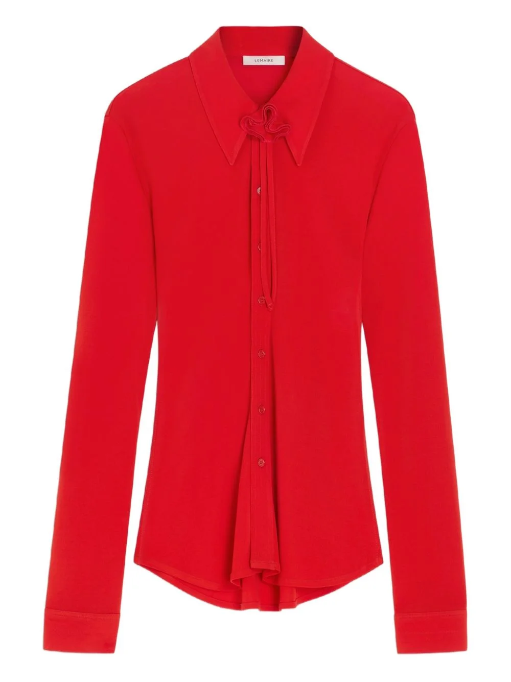 neck-cord long-sleeve shirt Highlights - Lipstick red - Removable cord - Flower detail - Button fastening - Long sleeves Imported Composition Viscose 100%