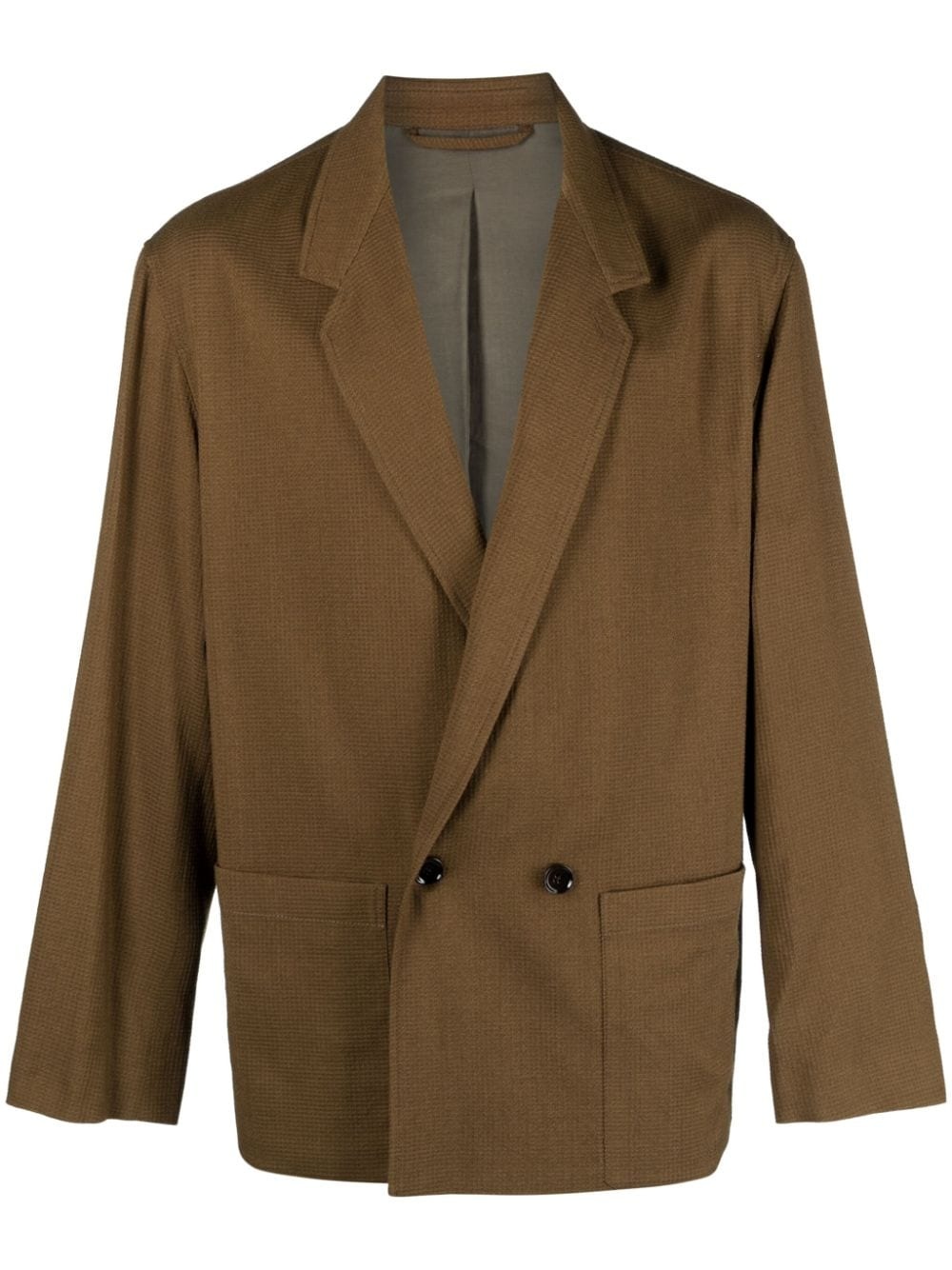 notched-lapel double-breasted blazer Highlights - Tobacco brown - Textured finish - Notched lapels - Virgin wool - Cotton blend - Notched lapels - Double-breasted button fastening - Long sleeves - Straight hem - Two side patch pockets Imported Composition Lining: Cotton 51%, Viscose 49% Outer: Virgin Wool 67%, Silk 33% SIZE & FIT Model measurements Height 6 ft 1 in(1.85 m) Bust/Chest 38.58 in(98 cm) Hips 37 in(94 cm) Waist 30.31 in(77 cm) FittingInformation Designed for a relaxed fit, this piece allows for comfort and movement when worn Made from a midweight non-stretch fabric This piece fits true to size – take your usual size Washing instructions Dry Clean Only