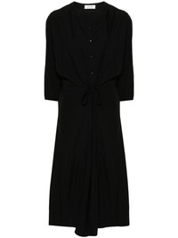 oversized cotton shirt dress Highlights - Black - Cotton - Poplin texture - Tonal stitching - Collarless - Three-quarter length puff sleeves - Side tie fastening - Mid-calf length - Side slits - Straight hem - Press-stud fastening Imported Composition Cotton 100% SIZE & FIT Model measurements Height 5 ft 10 in(1.78 m) Bust/Chest 33.07 in(84 cm) Hips 35.82 in(91 cm) Waist 25.98 in(66 cm) FittingInformation Designed to be unstructured, offering a loose fit throughout The adjustable tie waist gives a more adaptable and personalised fit Made from a midweight non-stretch fabric This piece fits true to size – take your usual size Washing instructions Machine Wash