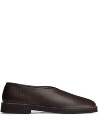 piped square-toe loafers Highlights - Dark brown - Grained leather - Slip-on model - Elongated square toe - Leather piping - Contrast topstitching Imported Composition Outer: CALFSKIN 100% Sole: Leather 100% Lining: Calf Leather 100%