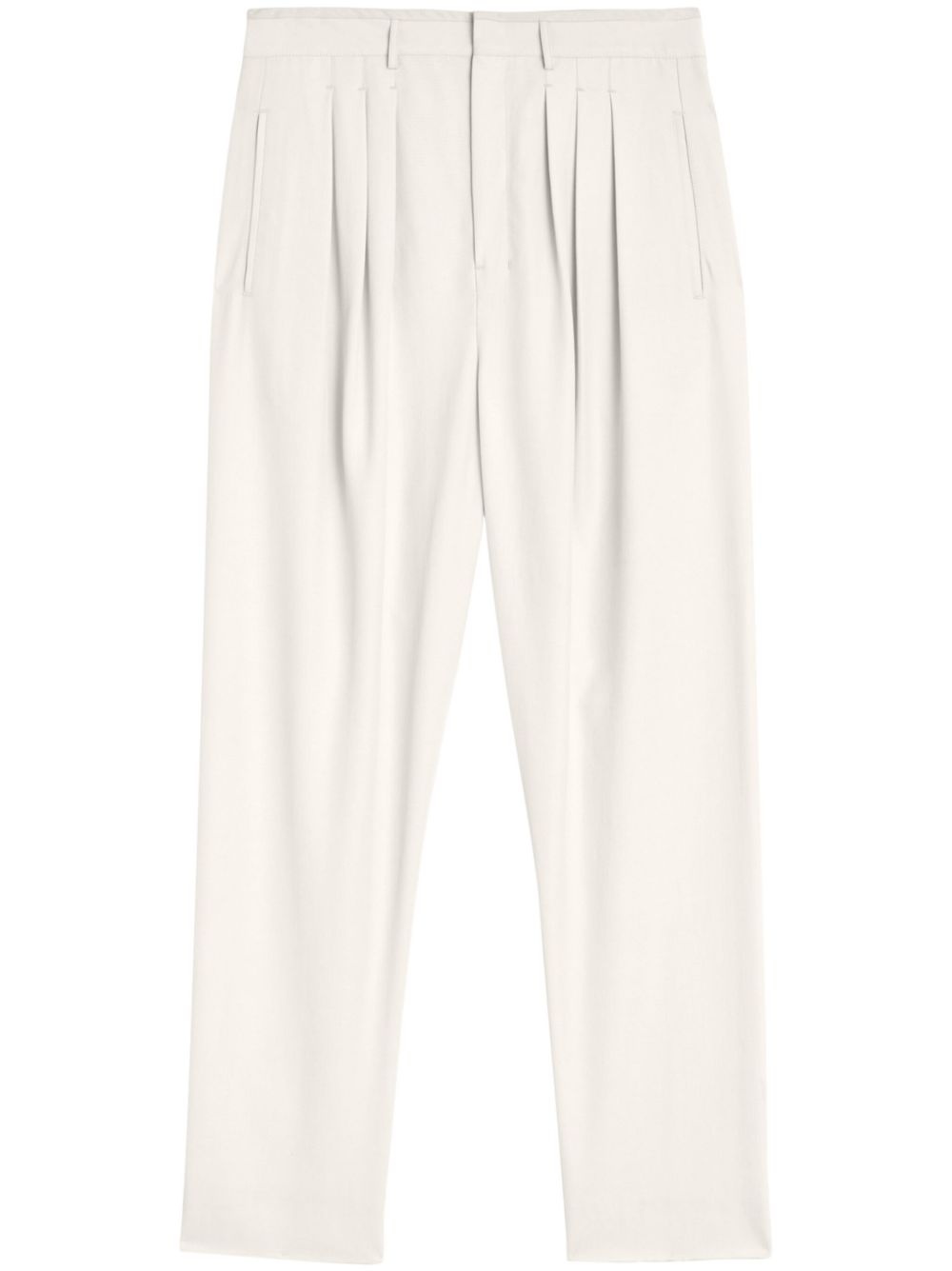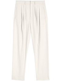 pleated tailored pants Highlights - White - Concealed front fastening - Belt loops - Two side welt pockets - Two rear welt pockets Imported Composition Lining: Cotton 100% Outer: Viscose 100% SIZE & FIT FittingInformation Designed for a tapered fit, these trousers allow for a close fit at the waist and a loose unrestricted fit over the leg with a closer fit towards the ankle Made from a midweight non-stretch fabric