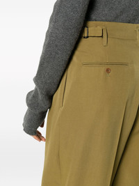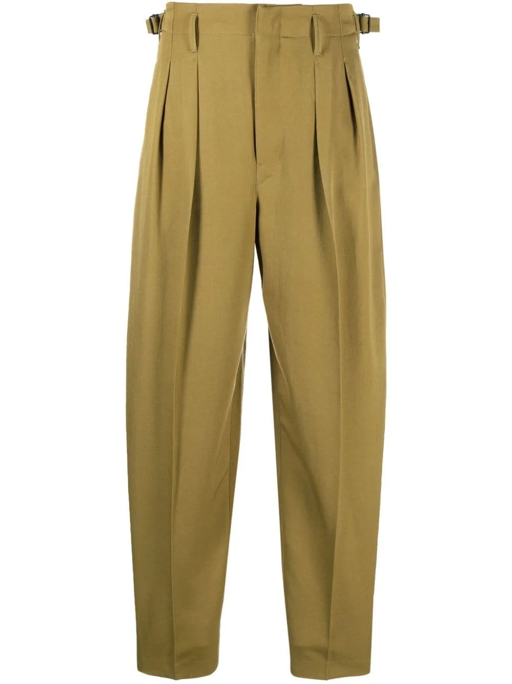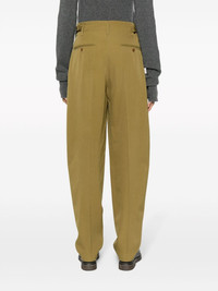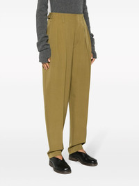 pleated virgin-wool trousers Clean-cut designs inspired by Paris' timeless elegance are the order of the day at Lemaire, and these pistachio-green trousers are a fine example. They're tailored from virgin wool to a tapered silhouette with dimension-enhancing pleats and adjustable side tabs. Highlights - Olive green - Virgin wool - Pleat detailing - Pressed crease - Belt loops - Concealed front fastening - Tapered leg - Two side inset pockets - Two rear button-fastening jetted pockets - Straight hem Imported Composition Lining: Cotton 100% Outer: Virgin Wool 100% SIZE & FIT Model measurements Height 5 ft 10 in(1.78 m) Bust/Chest 33.07 in(84 cm) Hips 36.61 in(93 cm) Waist 24.8 in(63 cm) FittingInformation Designed for a tapered fit, these trousers allow for a close fit at the waist and a loose unrestricted fit over the leg with a closer fit towards the ankle Made from a midweight non-stretch fabric This piece fits true to size – take your usual size Washing instructions Dry Clean Only