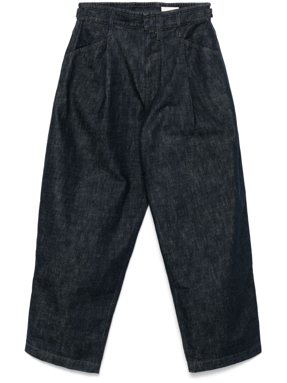 pleated workwear jeans Highlights - Indigo blue - Concealed front fastening - Belt loops - Two diagonal pockets to the sides - Two rear patch pockets Imported Composition Lining: Cotton 100% Outer: Cotton 100% SIZE & FIT Model measurements Height 6 ft 2 in(1.87 m) Bust/Chest 38.18 in(97 cm) Hips 36.61 in(93 cm) Waist 29.13 in(74 cm) FittingInformation Designed with a relaxed tapered leg, these jeans allow a comfortable loose fit above the knee and a closer fit towards the calve Sturdy and hard-wearing, this denim piece offers no stretch