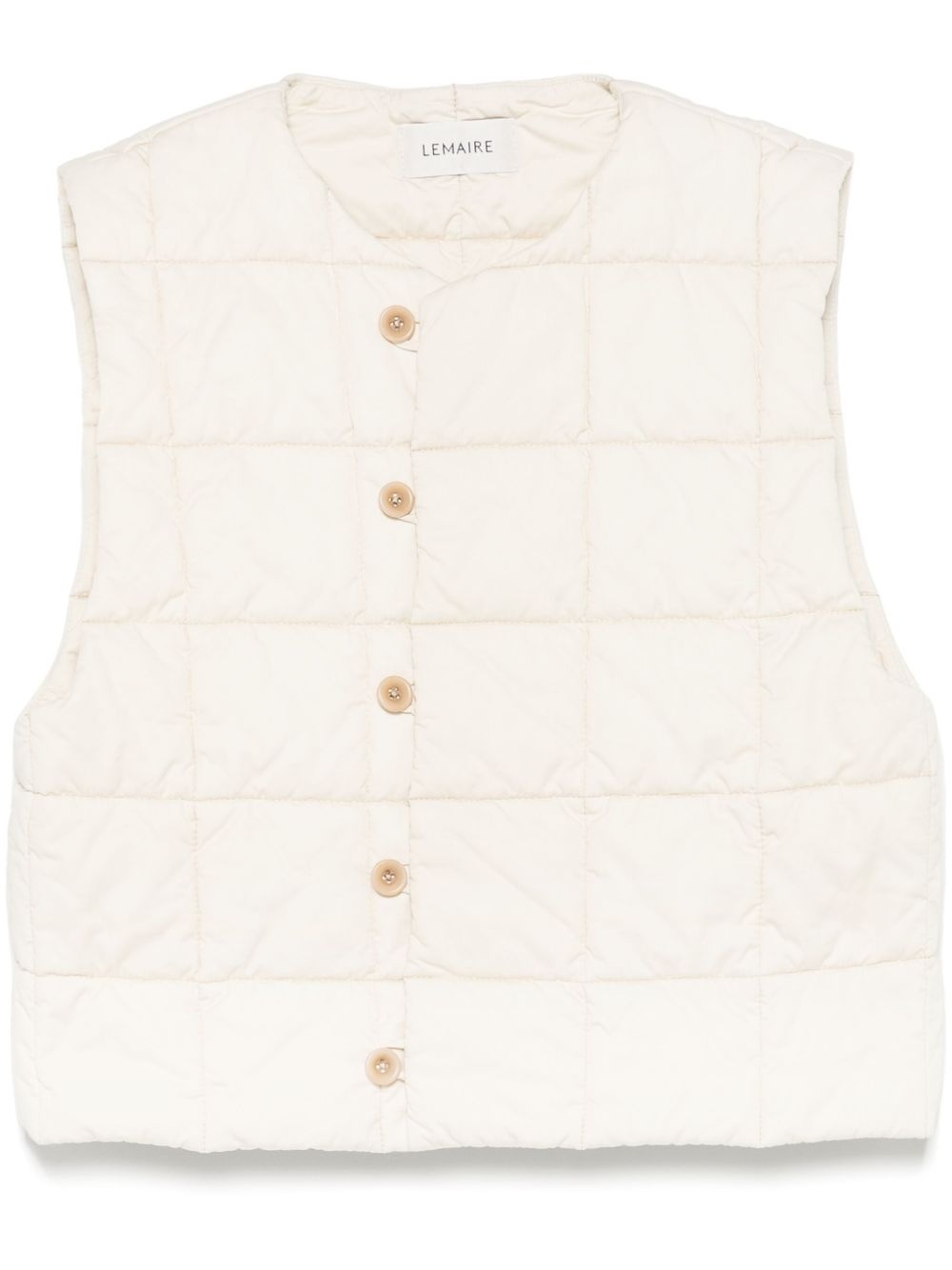 quilted gilet Highlights - Light beige - Front button fastening - Crew neck - Sleeveless Imported Composition Outer: Cotton 100% Lining: Cotton 100% SIZE & FIT Model measurements Height 5 ft 11 in(1.8 m) Bust/Chest 31.49 in(80 cm) Hips 36.61 in(93 cm) Waist 24.4 in(62 cm) FittingInformation Designed for a relaxed fit, this piece allows for comfort and movement when worn Made from a quilted non-stretch fabric, giving it no natural elasticity