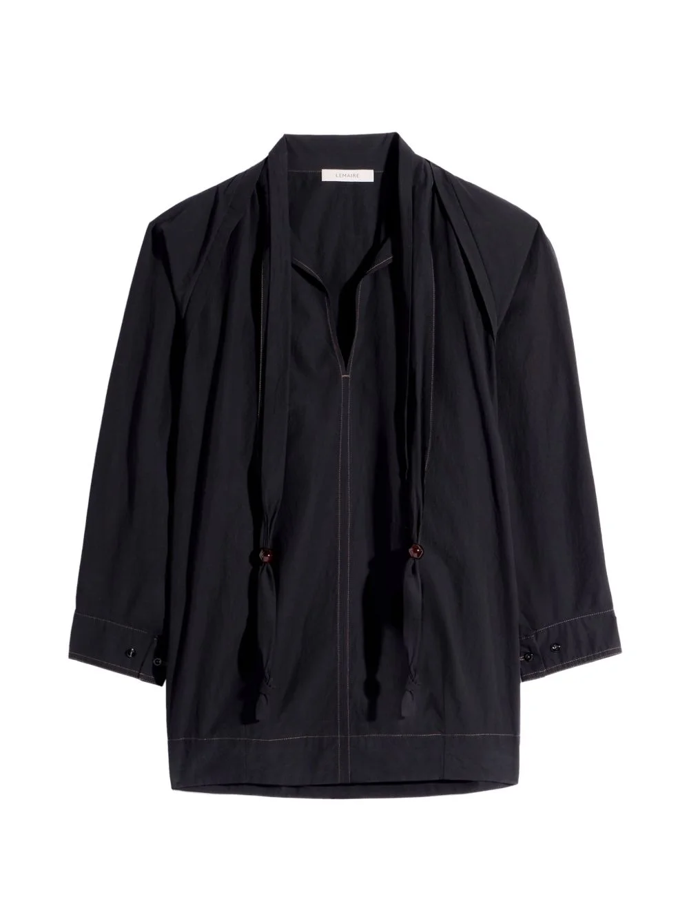 scarf cotton blouse Highlights - Black - Crepe fabric - Integrated scarf - Topstitch detail Imported Composition Cotton 100% Washing instructions Read Manufacturer Guidelines
