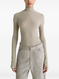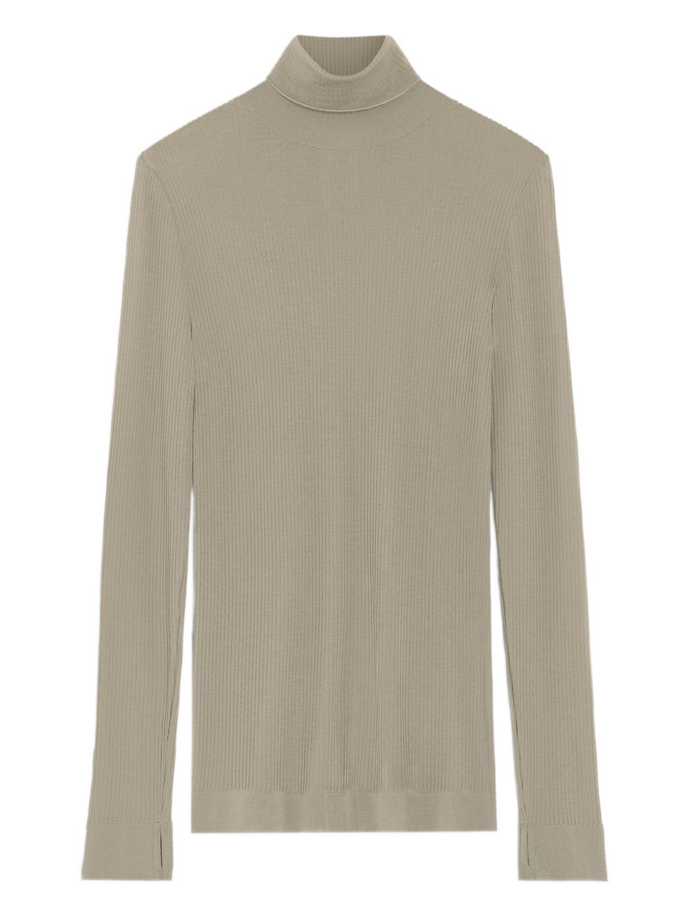 seamless turtleneck top Highlights - Green - Ribbed knit - Turtleneck - Long sleeves - Thumbhole cuffs - Seamless construction Made in France Composition Fabric 100% Washing instructions Read Manufacturer Guidelines