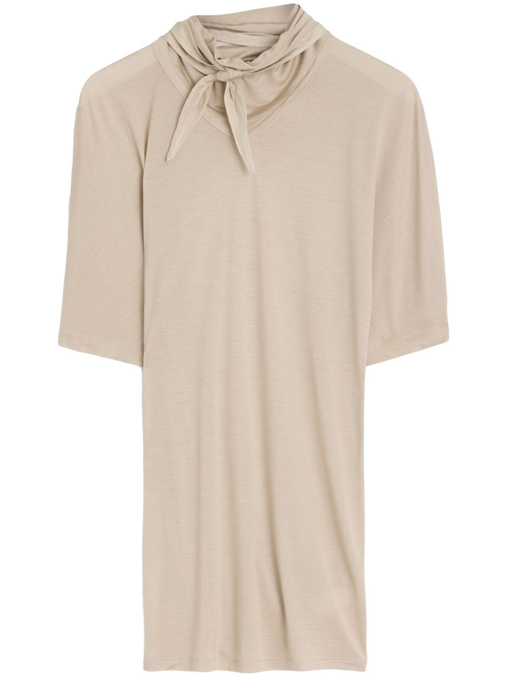 short sleeve with foulard t-shirt Highlights - Blush beige - Attached scarf - Knot detailing - High neck Imported Composition Fabric 100%