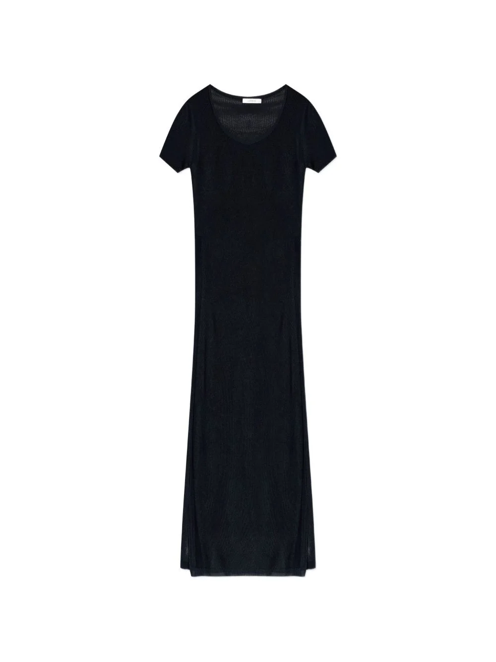 side-slit T-shirt Highlights - Black - Crew neck - Short sleeves - Side slits - Ankle-length - Straight hem Imported Composition Viscose 100% Washing instructions Read Manufacturer Guidelines