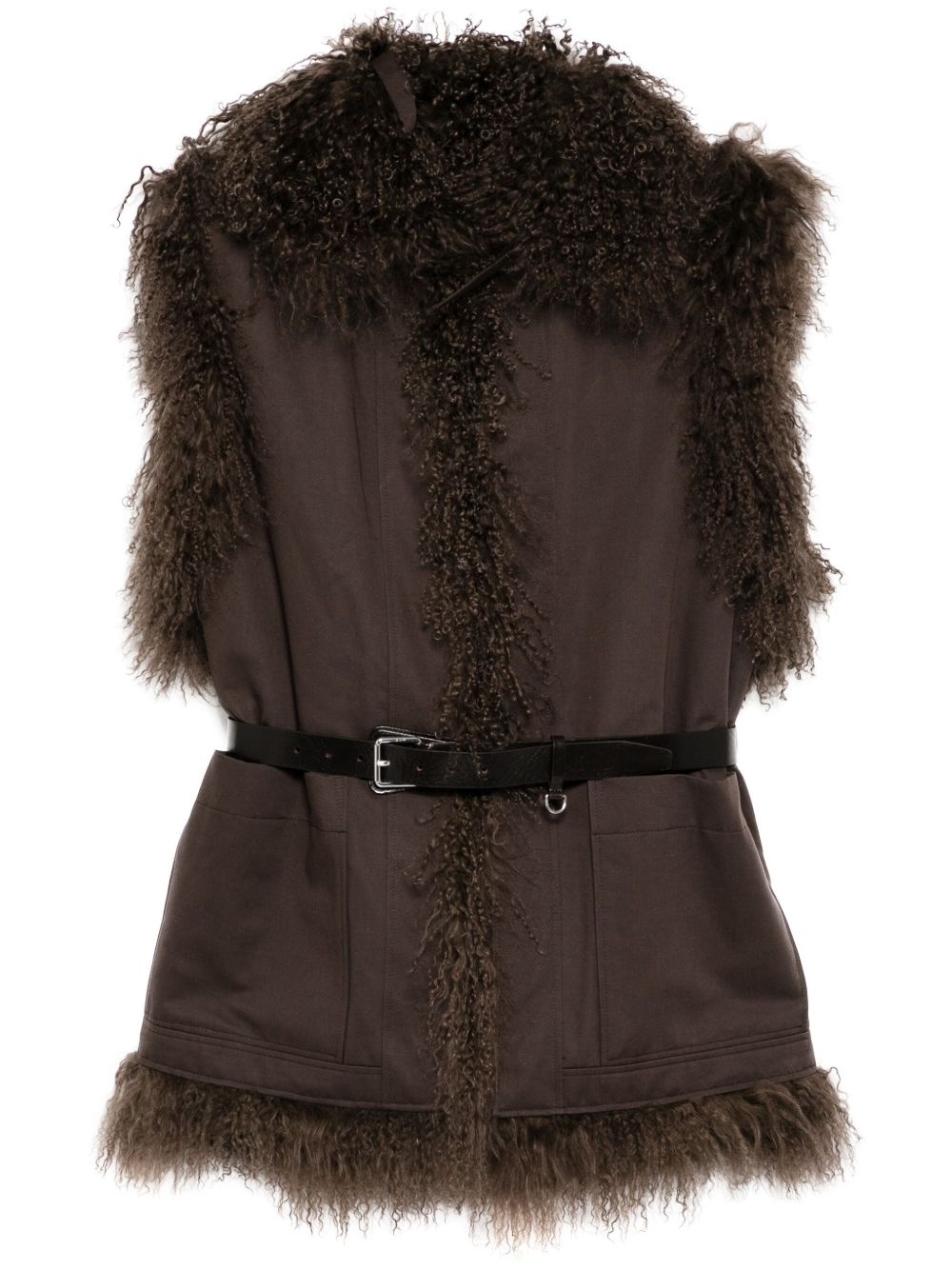 REVERSIBLE BELTED LONG SHEARLING GILET