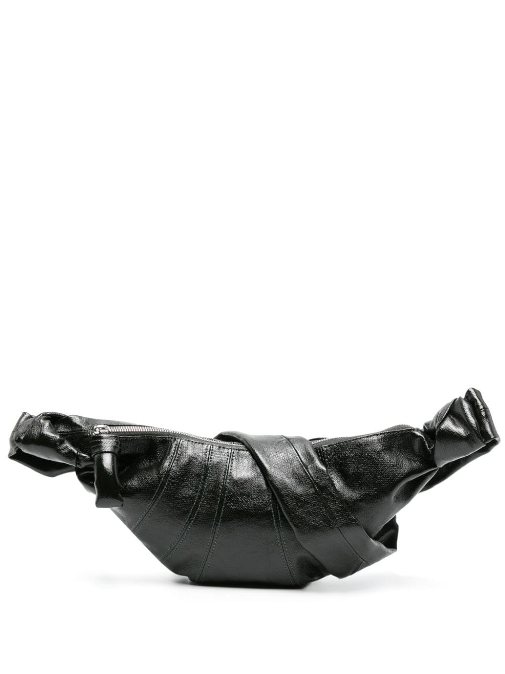 small Croissant shoulder bag Lemaire's hallmark handbag is inspired by its namesake French pastry, expertly crafted from assembled topstitched cut-outs. This iteration is crafted from shiny coated cotton and finished with a crisp texture. Highlights - Forest green - Cotton - Coated finish - Single shoulder strap - Top zip fastening - Main compartment - Internal logo patch - Internal slip pocket Imported Composition Outer: Cotton 100%, Acrylic 100% Lining: Cotton 100% SIZE & FIT Model measurements Height 5 ft 10 in(1.78 m) Bust/Chest 31.49 in(80 cm) Hips 37 in(94 cm) Waist 23.62 in(60 cm) Measurement DEPTH 3.93 in(10 cm) HEIGHT 4.72 in(12 cm) STRAP 17.32 in(44 cm) WIDTH 14.17 in(36 cm)