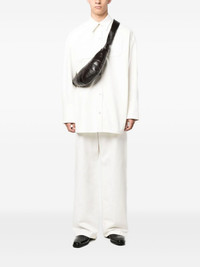 small Croissant zipped messenger bag Boasting a slouchy and curved construction, Lemaire's signature Croissant bag is produced in a dark chocolate iteration. Crafted from lambskin in Spain, the tonal design is complete with a top zip fastening. Highlights - Dark chocolate brown - Lambskin leather - Single shoulder strap - Zipper closure - Although it is new and unworn, due to the specialised recovery and tanning process that lemaire uses for its leather goods, the texture of this piece will display signs of the material's natural grain, softness and creases. Imported Composition Outer: Lambskin 100% Lining: Cotton 100% SIZE & FIT Measurement HEIGHT 5.9 in(15 cm) WIDTH 13.77 in(35 cm) DEPTH 1.96 in(5 cm) Washing instructions Specialist Cleaning