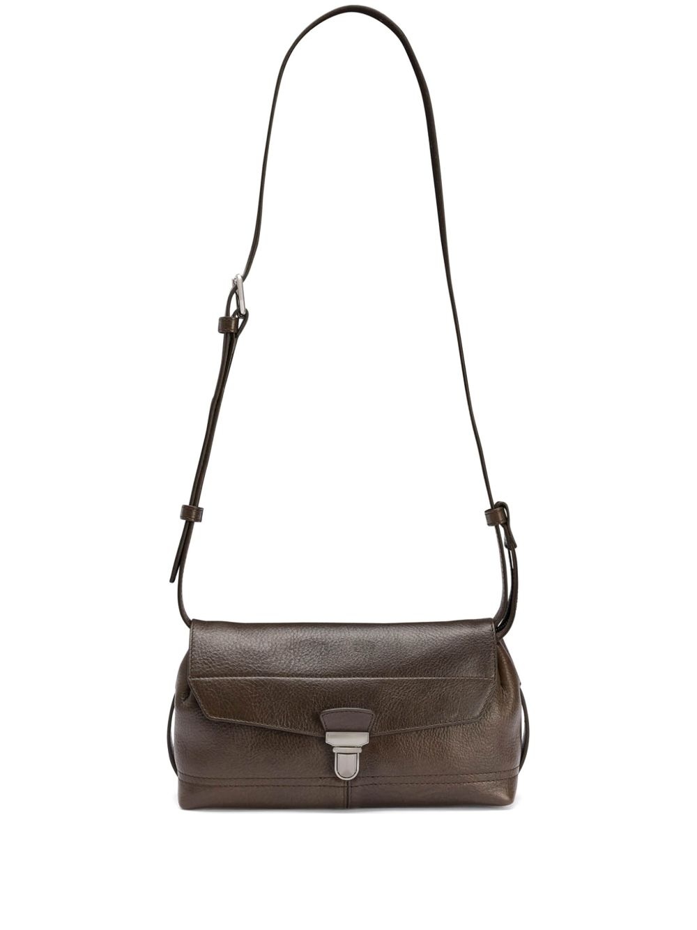 small Gear shoulder bag Highlights - Brown - Foldover top - Top zip fastening - Adjustable shoulder strap - Main compartment Imported Composition Outer: Calf Leather 100% SIZE & FIT Measurement DEPTH 3.93 in(10 cm) HEIGHT 6.29 in(16 cm) STRAP 14.56 in(37 cm) WIDTH 11.81 in(30 cm)
