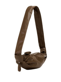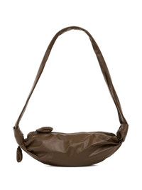 small Soft Croissant shoulder bag Highlights - Olive brown - Calf leather - Top zip fastening - Single shoulder strap - Knot detailing - Side zip-fastening pocket - Main compartment - Cotton lining - Internal zip-fastening pocket - Internal logo patch - Although it is new and unworn, due to the specialised recovery and tanning process that lemaire uses for its leather goods, the texture of this piece will display signs of the material's natural grain, softness and creases. Imported Composition Outer: Calf Leather 100% Lining: Cotton 100% SIZE & FIT Measurement DEPTH 3.54 in(9 cm) HEIGHT 11.02 in(28 cm) WIDTH 24.8 in(63 cm)