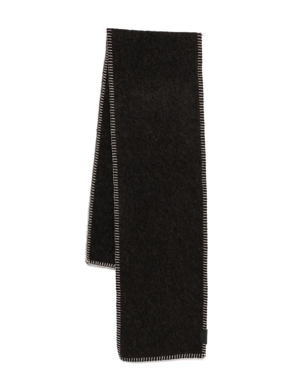 stitched scarf Highlights - Brown - Off-white stitching - Straight edges - Rectangular shape Imported Composition Fabric 100% Washing instructions Read Manufacturer Guidelines