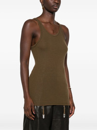 suspenders-detail seamless tank top Highlights - Coffee brown - Wool - Fine ribbed - Seamless - Suspenders detailing - Scoop neck - Sleeveless - Straight hem Made in France Composition Wool 100% SIZE & FIT Model measurements Height 5 ft 10 in(1.77 m) Bust/Chest 32.28 in(82 cm) Hips 35.03 in(89 cm) Waist 25.19 in(64 cm) FittingInformation Designed for a close fit throughout Made with a lightweight knit, this piece offers some stretch This piece fits true to size – take your usual size