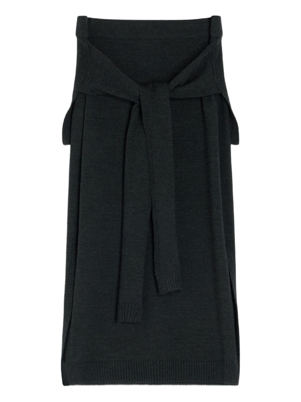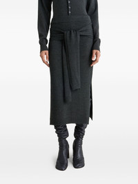 tie-around ribbed midi skirt Highlights - Dark grey - Trompe l'oeil effect - Ribbed waistband - Sweater-style back panels - Side slits - Rib-knit trim Imported Composition Wool 100% Washing instructions Read Manufacturer Guidelines