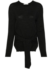 crew-neck sweater Highlights - Anthracite grey - Wool blend - Fine knit - Crew neck - Asymmetric design - Long sleeves - Exposed-seam detailing - Ribbed cuffs and hem - Side slits - Tied waist - High-low hem Imported Composition Acrylic 50%, Wool 50% SIZE & FIT Model measurements Height 5 ft 10 in(1.77 m) Bust/Chest 29.92 in(76 cm) Hips 34.25 in(87 cm) Waist 23.62 in(60 cm) FittingInformation Designed for a relaxed fit, this piece allows for comfort and movement when worn Made with a midweight knit, this piece offers some stretch This piece fits true to size – take your usual size