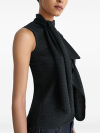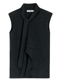 tie-neck knitted vest Highlights - Black - Sleeveless - Tie neck - Asymmetrical front-closure Imported Composition Fabric 100% Washing instructions Read Manufacturer Guidelines
