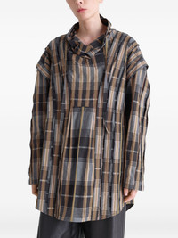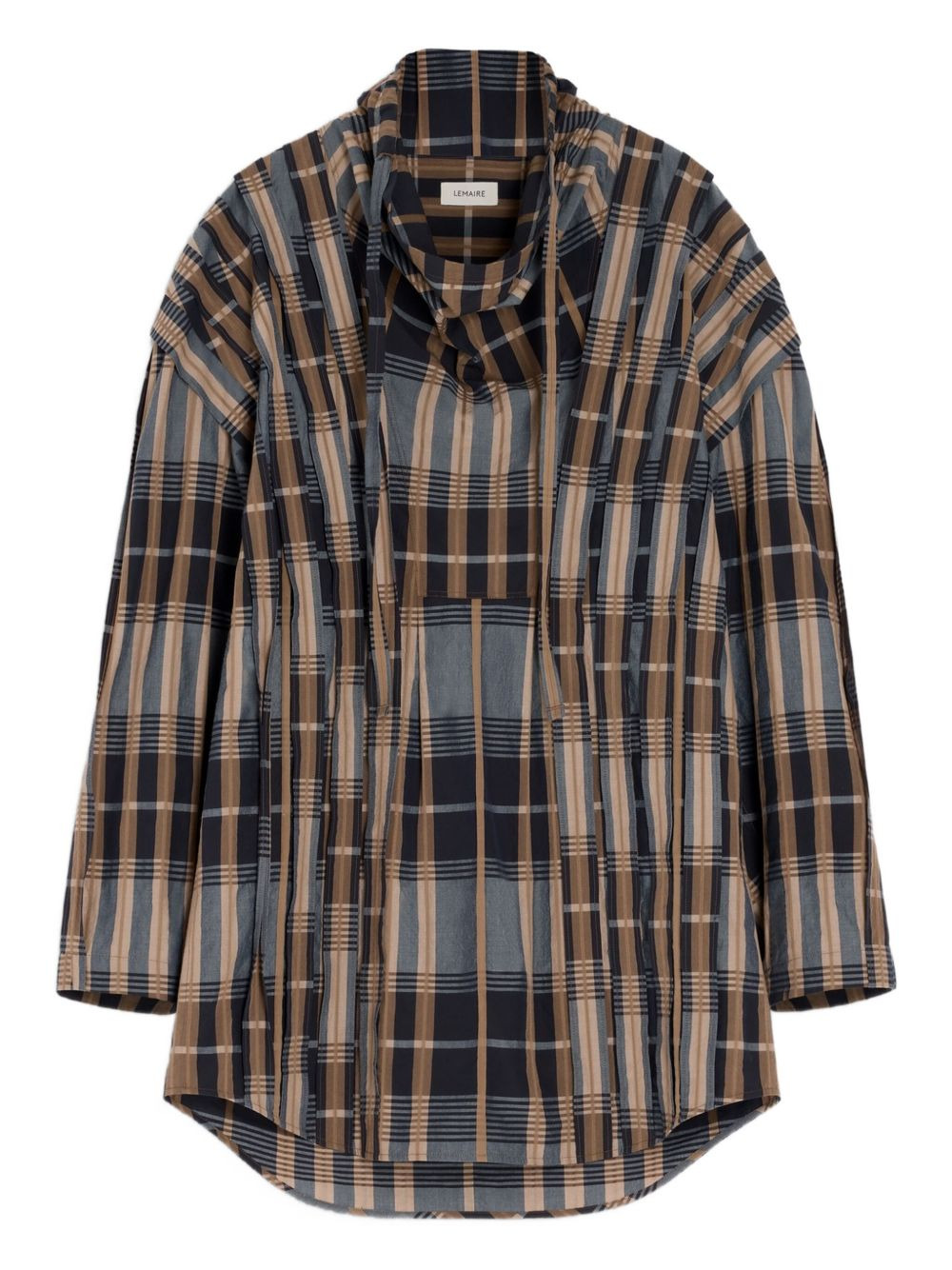 topstitched striped blouse Highlights - Blue and beige - Check pattern - Appliqued stripes - Topstitched stripes - High neck - Drawcord neck - Shoulder pleats Imported Composition Fabric 100% Washing instructions Read Manufacturer Guidelines