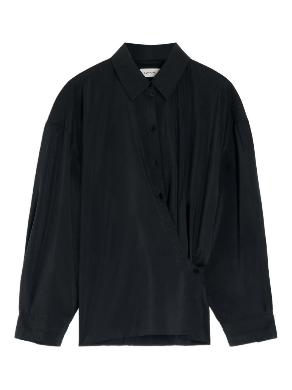twisted-detail polo-collar shirt Highlights - Black - Long sleeves - Buttoned cuffs - Button fastening - Twisted detail Imported Composition Fabric 100% Washing instructions Read Manufacturer Guidelines